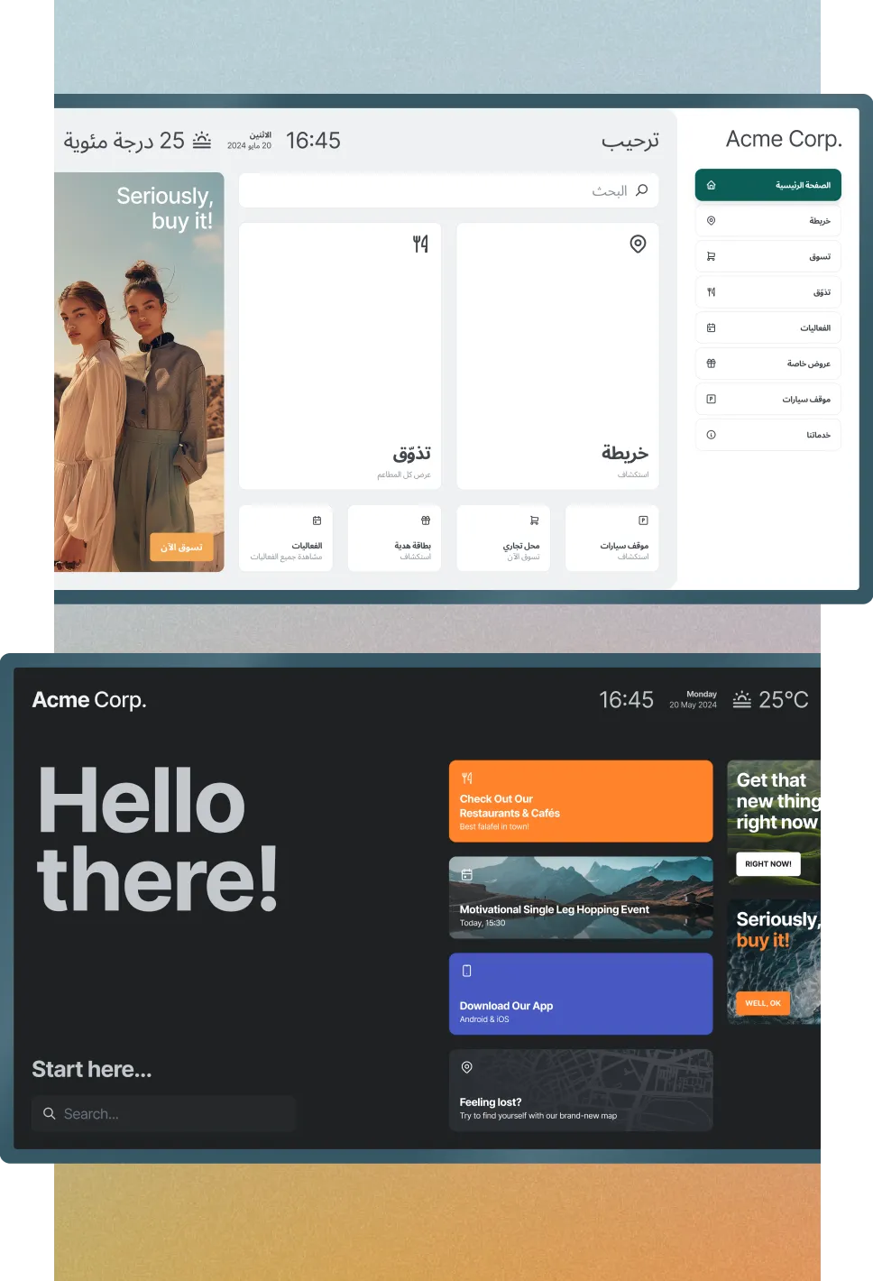 Welcome, idle screens and in-store advertising