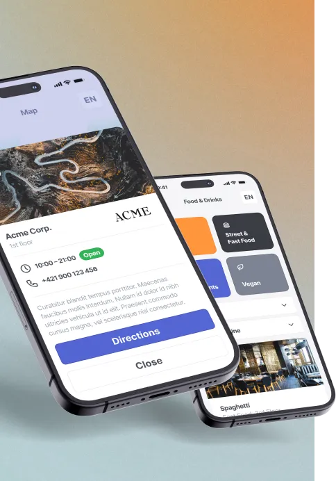 Help your shoppers quickly find the information they need about store locations, categories, services, etc. Display lists of shops and points of interest with detailed shop info, images, and opening hours.