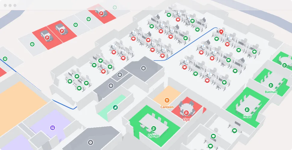 MapsIndoors provides one central platform for your map and spatial data. This single source powers all your systems—from desk booking and visitor management, to facilities and security.