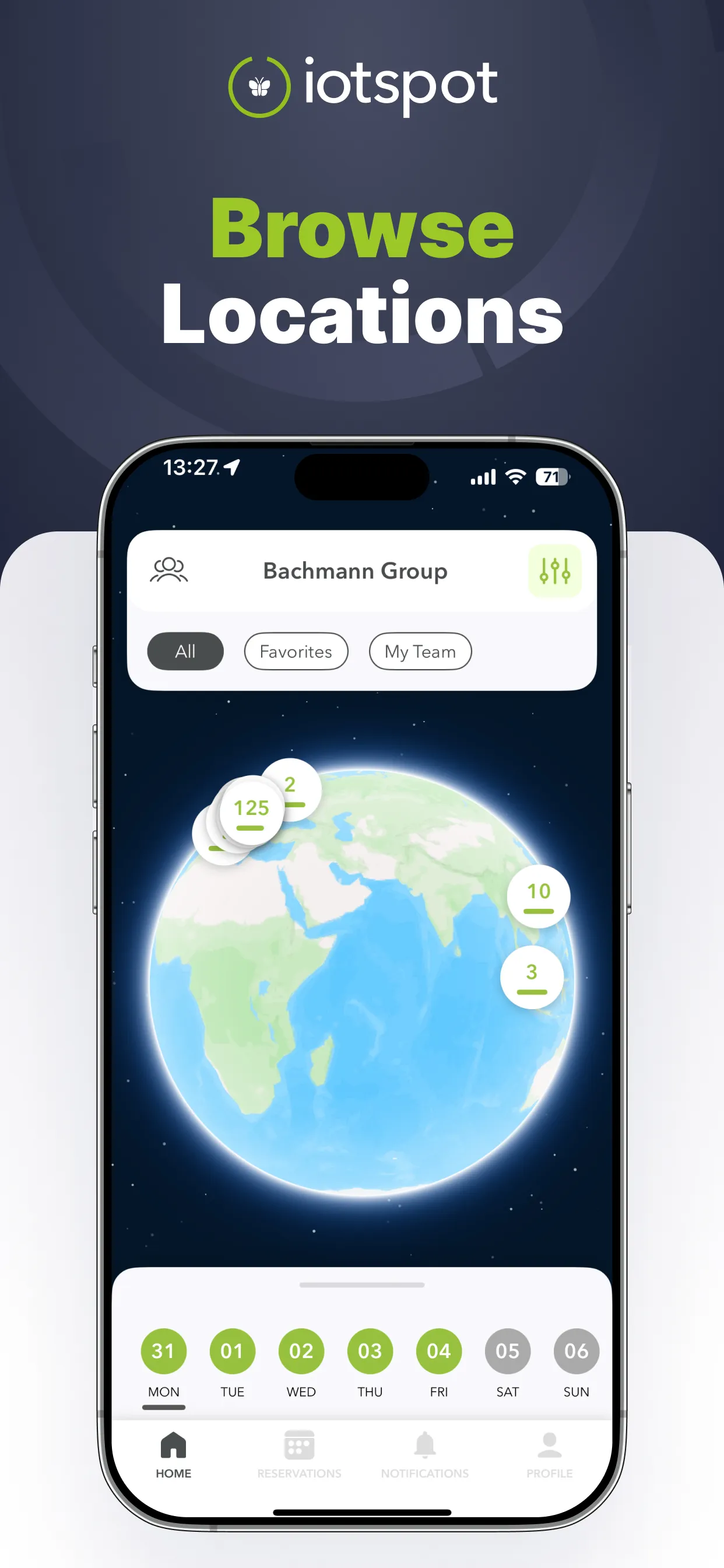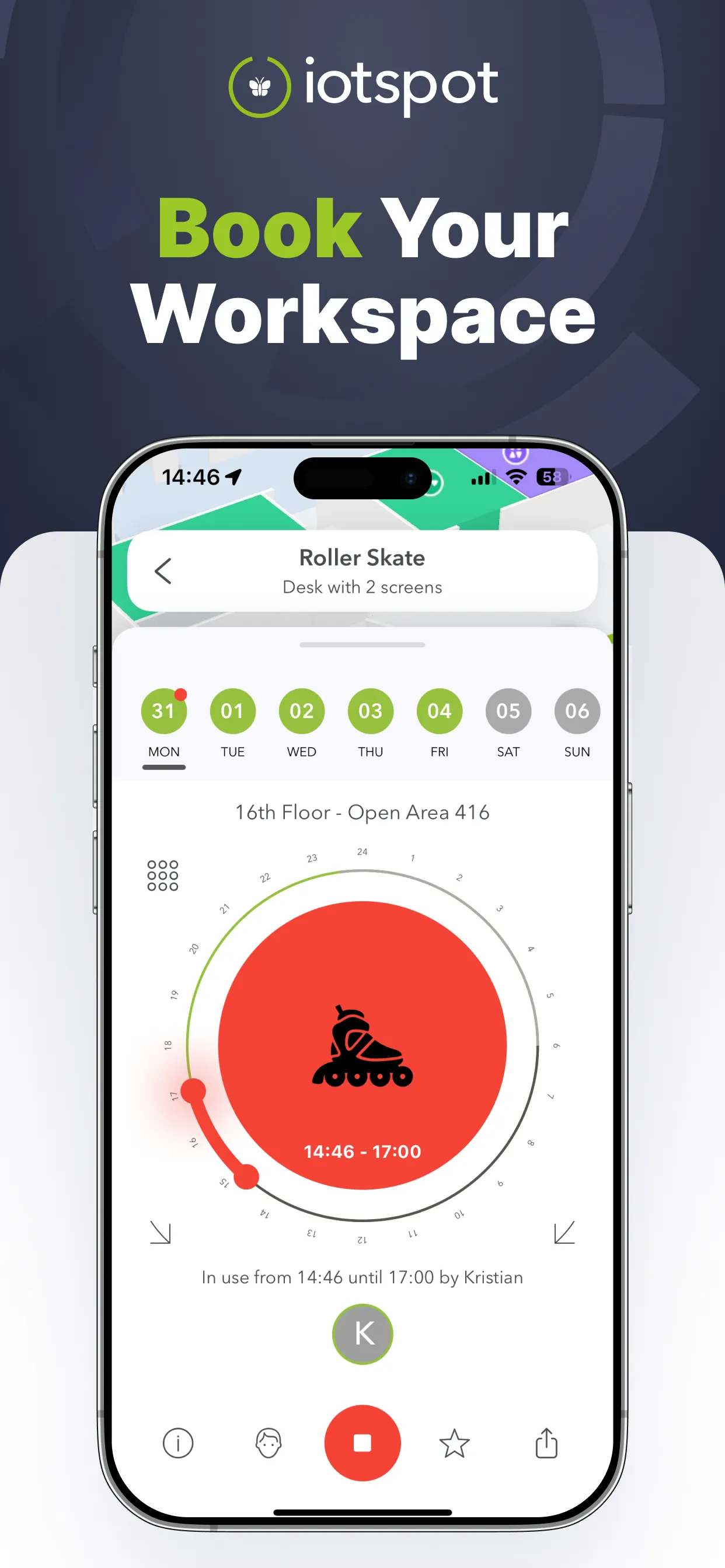 iotspot offers a booking system that allows employees to reserve desks, rooms, or parking spots via app or web. This helps organizations manage hybrid work policies and reduce space-related friction in shared office environments.
